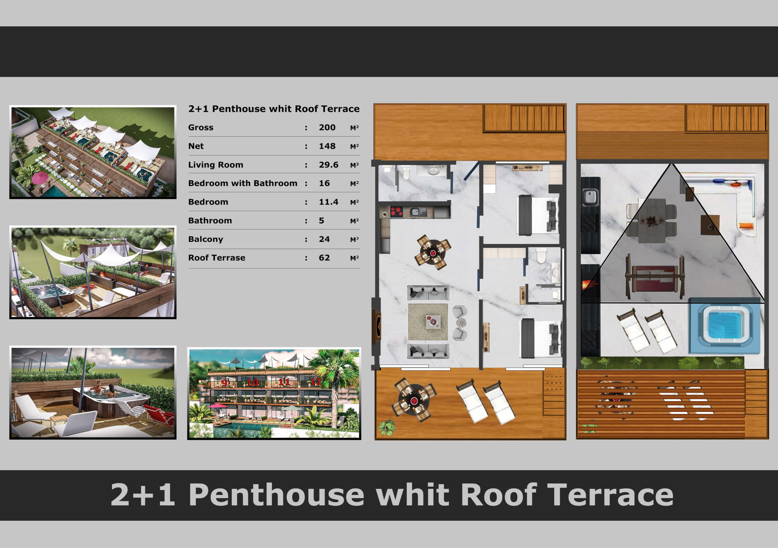 2+1 пентхаус с террасой на крыше,