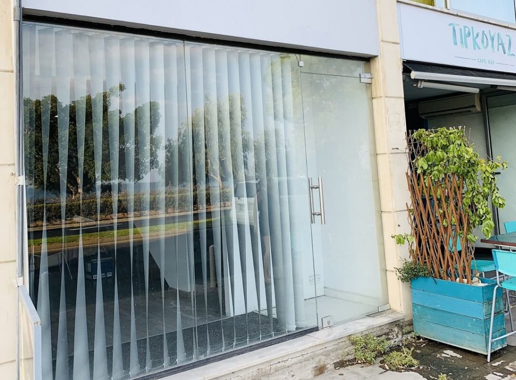 Магазин имеет фасадную сторону, выходящую на главную пляжную дорогу и море. На первом этаже есть открытое пространство 41м2 с выходом на заднюю сторону, ведущим на парковку. На антресольном этаже находится туалет с кухней и место для 2-х столов с видом на море.