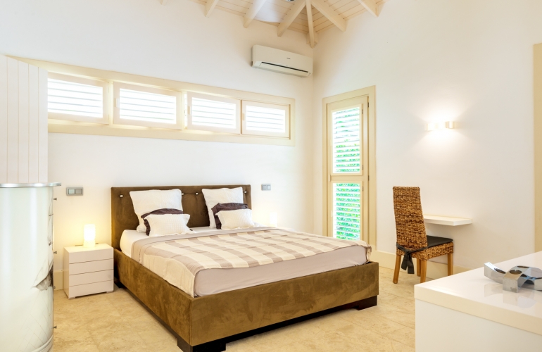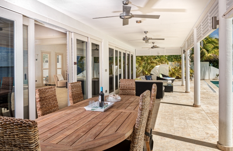 Открытая кухня очень хорошо оборудована, а за большим обеденным столом на открытом воздухе можно часами наслаждаться напитками и ужинами. Есть 3 спальни с кондиционерами и вентиляторами. Есть 2 ванные комнаты. Снаружи есть бак для ополаскивания и шкаф, чтобы повесить водолазное снаряжение.
