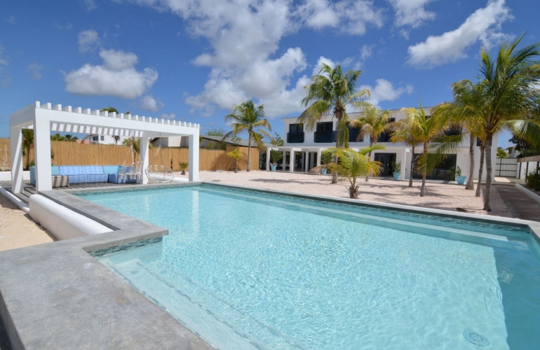 Красивая просторная вилла с частным бассейном. Прямо на берегу океана с частным бассейном и беседкой с прекрасным видом на океан. На вилле есть широкая веранда со столовой, стильная вилка полностью оборудованная кухня, 4 спальни и 4 комнаты со стильной сантехникой. Расположен в тихом жилом районе, в 7 минутах езды на машине от центра Кралендейка.